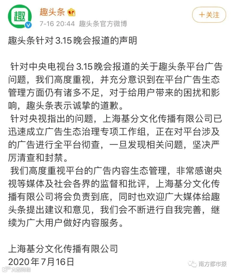 对此,趣头条官方在微博回应称,公司已迅速成立广告生态治理专项工作组,正在对平台涉及的广告进行全平台彻查,一旦发现相关问题,坚决严厉清查和封禁。