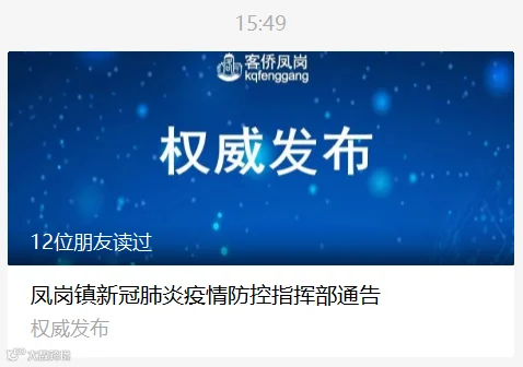 凤岗镇新冠肺炎疫情防控指挥部发出通告,