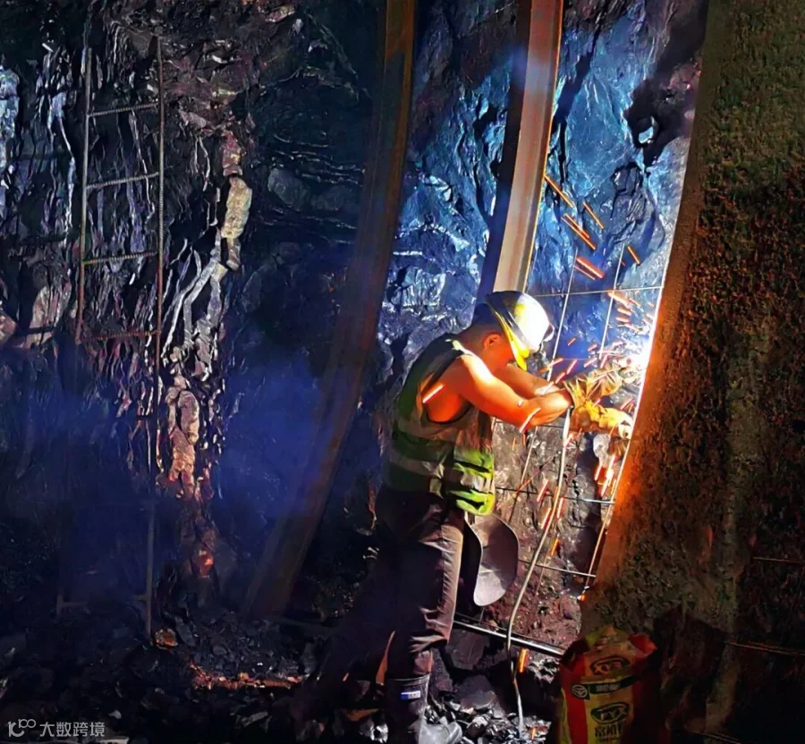 正值春夏之交,梅州东环项目其古顶隧道内,闷热潮湿,焊接工人李师傅却干劲十足,专心致志地对钢筋网片结点进行牢固焊接,为贯通左洞最后剩余45m做好安全防护。
