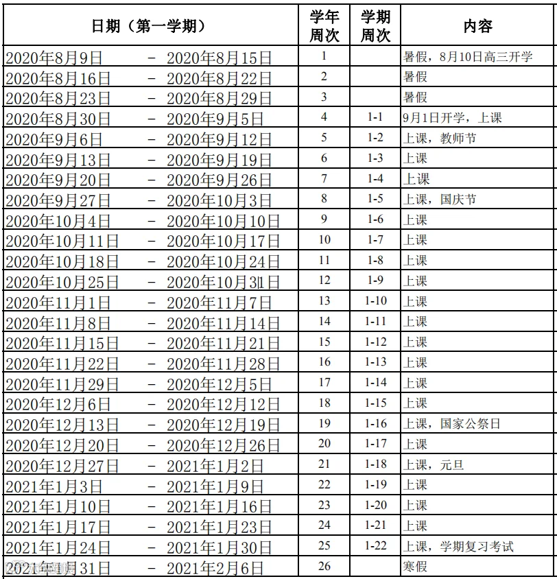 高中的开学时间也为9月1日,而高三的开学时间为8月10日。