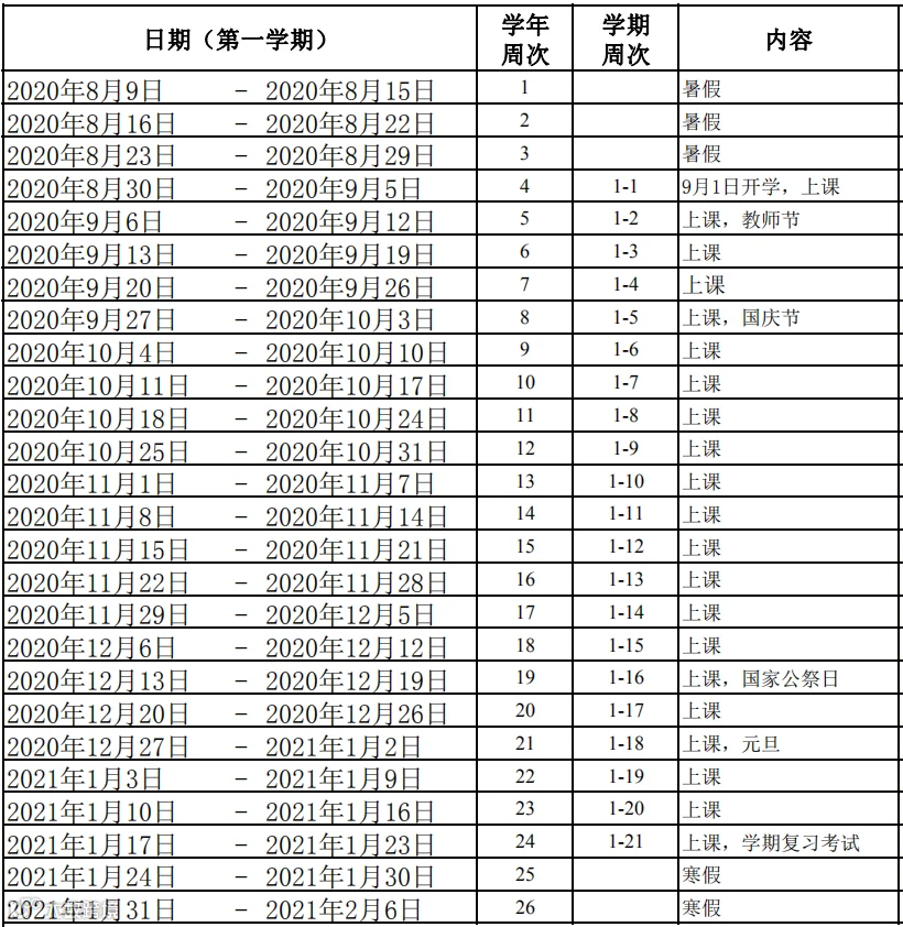 近日,珠海市教育局公布了2020-2021学年新学年校历。其中小学、初中9月1日开始新学年上课、