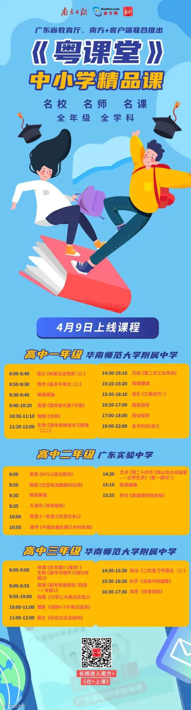4月9日,南方+云学校将继续上新23节高中课程,让学生在家也能约见名师。