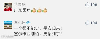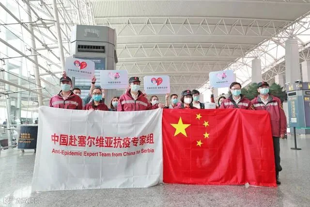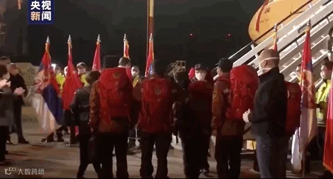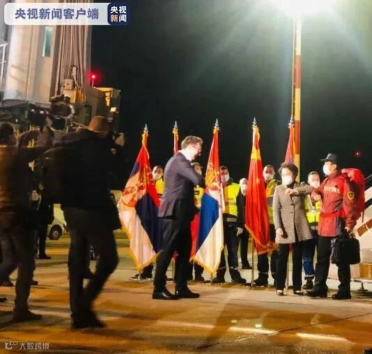 塞尔维亚总统武契奇、卫生部长、国防部长等多位政府官员在停机坪等候,武契奇与医疗队成员一一碰肘,表示热烈欢迎和由衷感谢。