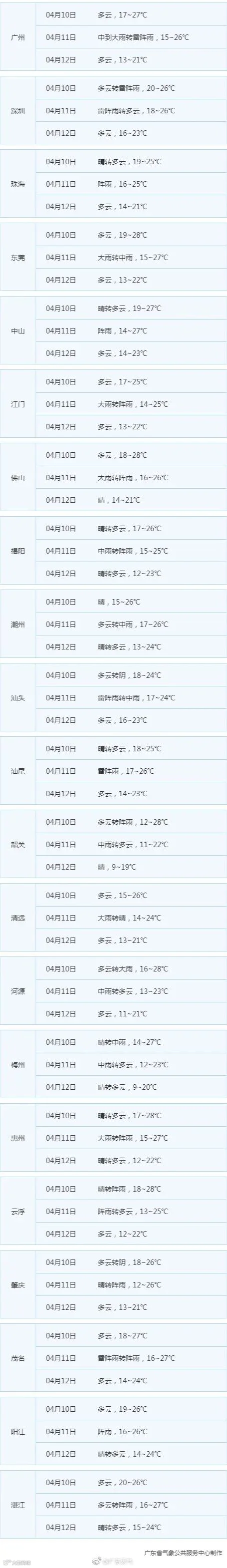 广东21地市三天的天气预告