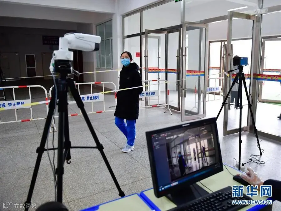 3月9日,在青海省海东市第二中学,学生接受热感应成像仪测温。