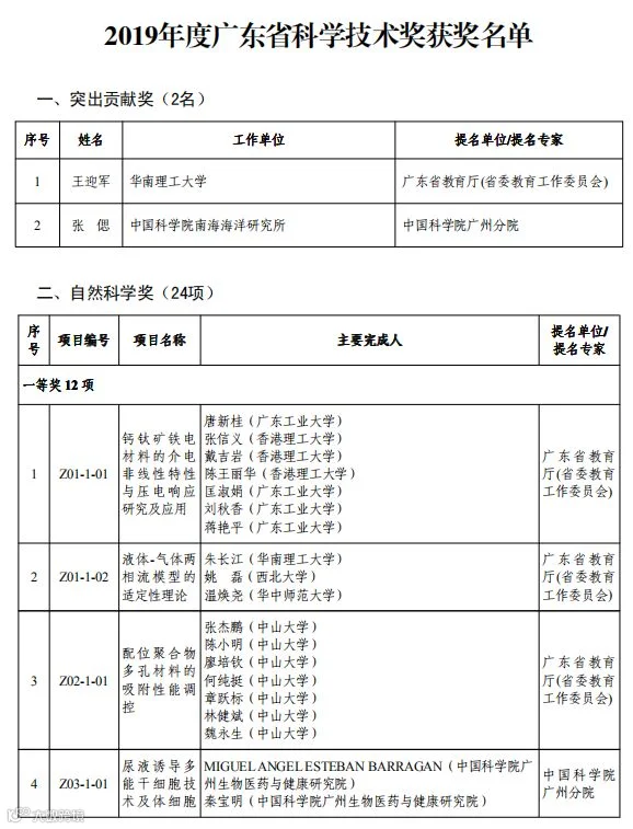 新鲜出炉的2019年度广东省科学技术奖,他们榜上有名