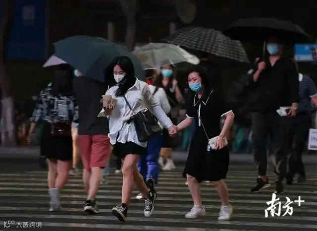 下午4点45分左右,广州天河体育东路,白昼如夜,市民们在街上匆忙赶路。