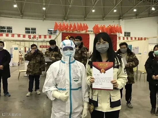 志愿者自己组织了合唱队、朗诵队、读书角和舞蹈队等。慢慢的,方舱医院不再是最开始的那个冰冷的世界。有一次大合唱还上了央视。2月15日,第一批患者出院,大家很开心,还组织了一个送别仪式。