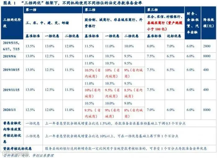 如果2019年继续加大普惠金融贷款投放,满足额外1.5个点的优惠,那么2020年的存准率可降至9%。