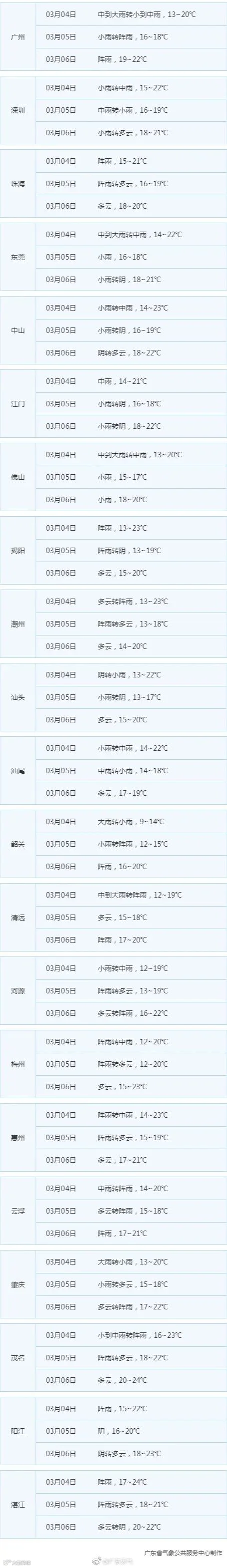 来源:南方网综合广东天气