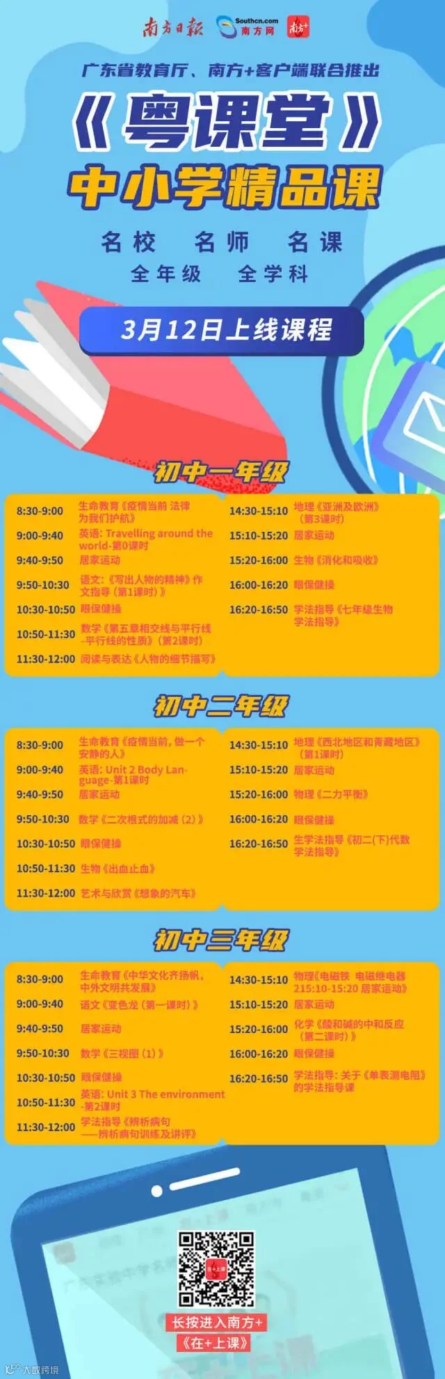 3月12日,各年级将上线哪些新课程?课表来啦!