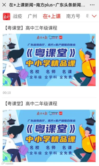 3月2日起,广东中小学校开展线上教育,保证新学期教育教学进度。省教育厅与南方报业传媒集团合作打造南方+云学校,把南方+客户端作为“粤课堂”系列精品课的主要网络收看渠道,开通《在+上课》频道,每天提供名师精品课程,向全省学生免费开放共享。【