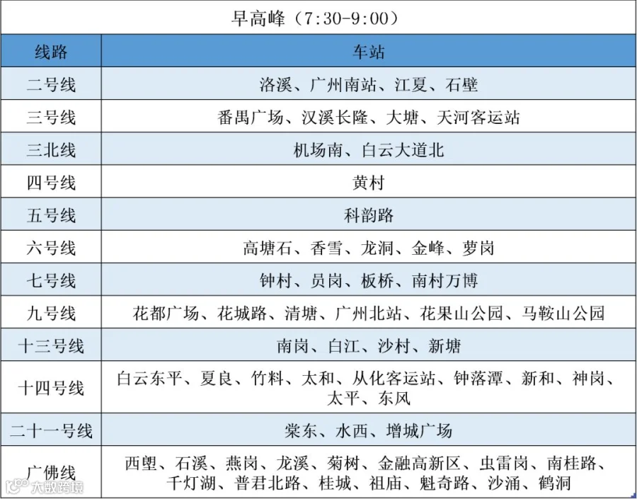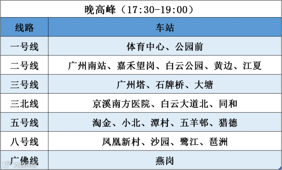 根据广州地铁1日公布的限流车站表,限流车站比此前明显增加,原来是早晚高峰10个车站视情况限流,现在早高峰28个、晚高峰12个常态化限流,涉及的线路从此前的3条增加至7条(三号线与三号线北延段按一条计算)。其中,三号线(含北延段)早高峰有12个车站需要限流,晚高峰有8个。