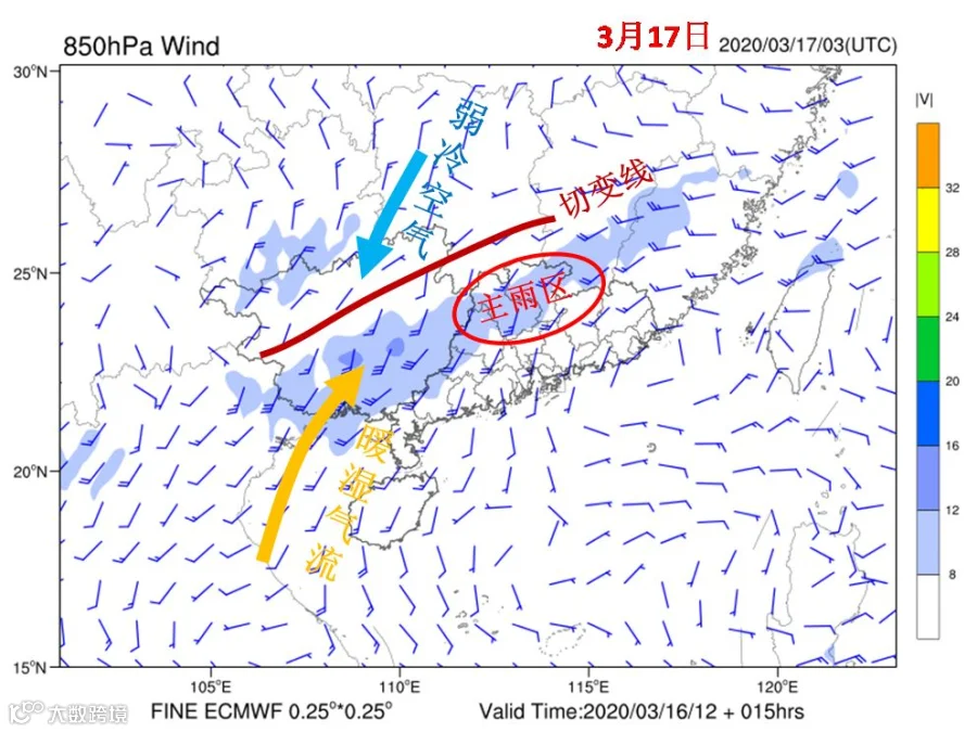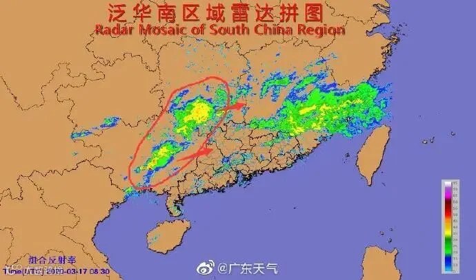 今天偏南暖湿气流携带着充足的水汽上岸,