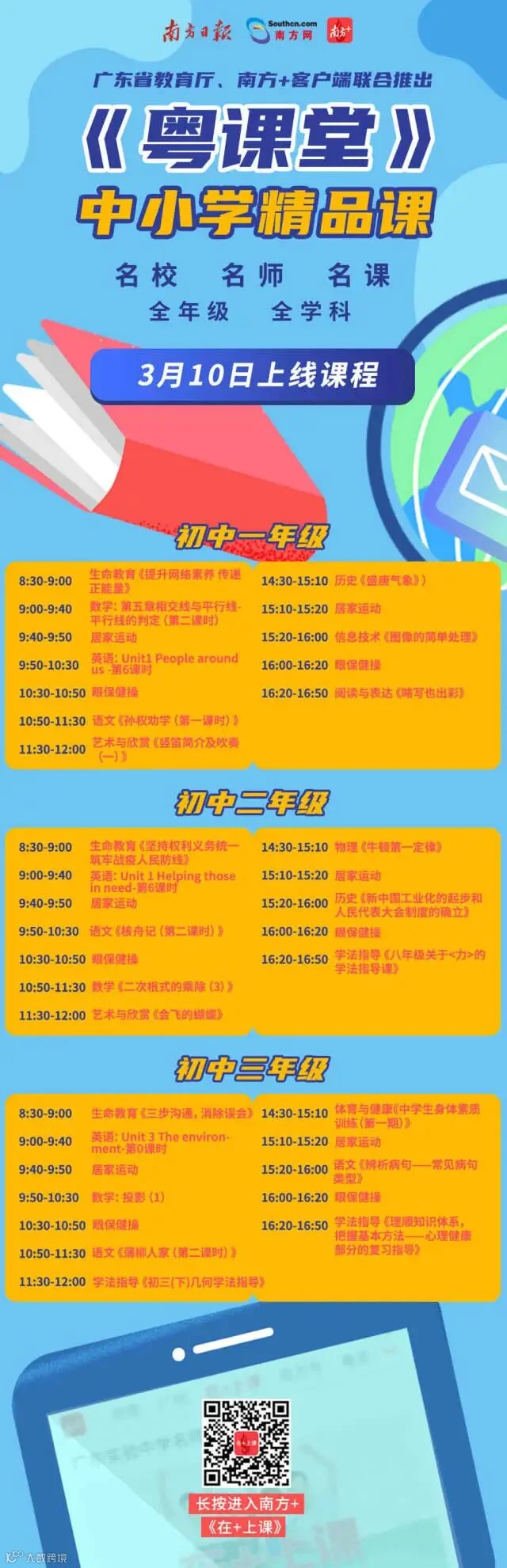 3月10日,各年级将上线哪些新课程?课表来啦!