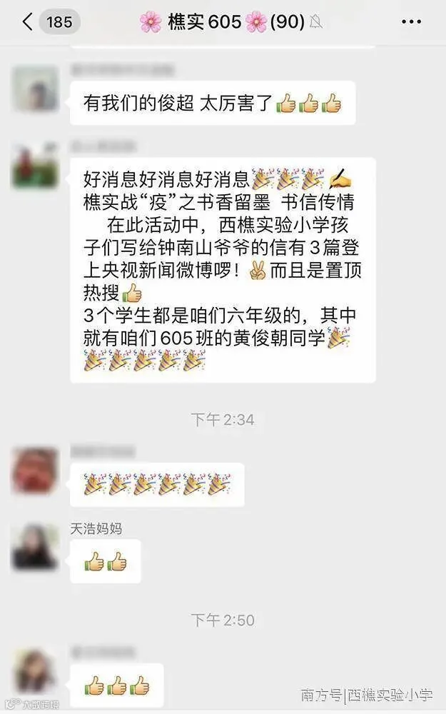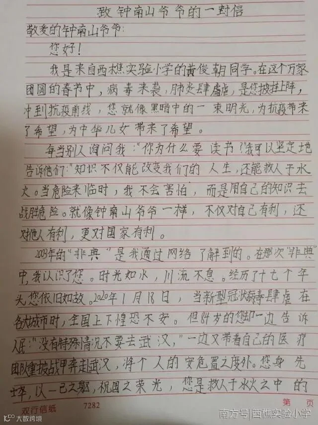 西樵实验小学孩子们写给钟南山的信,三篇被央媒关注。