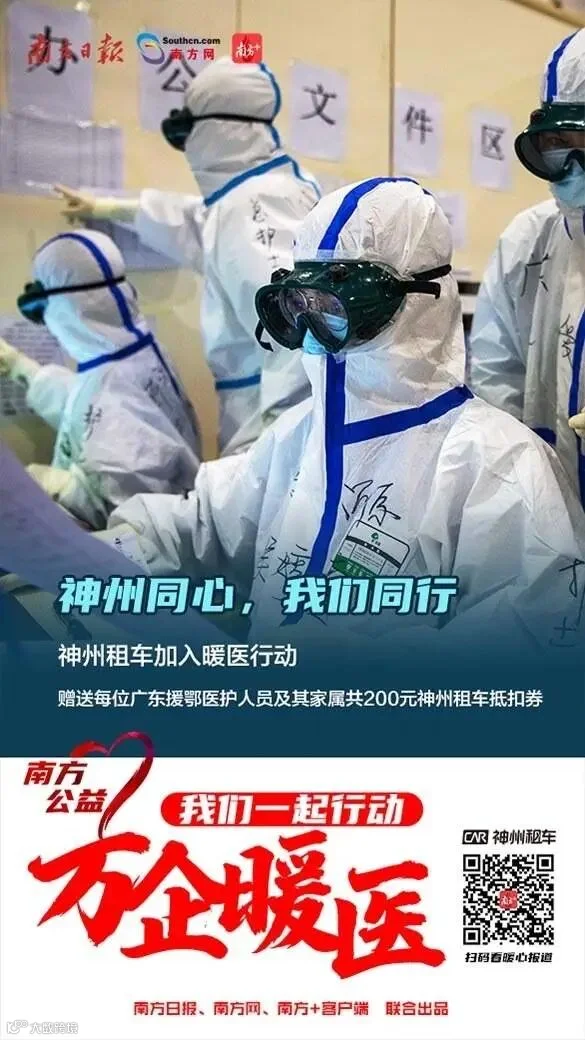 神州租车赠送每位广东援鄂医护人员及其家属共200元神州租车抵扣券,供医护人员及其家属在疫期出行使用。