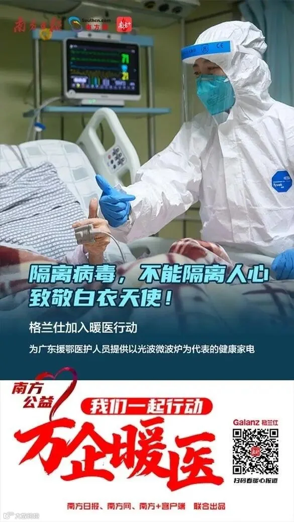 目前已经有17家企业加入“万企暖医——我们一起行动”公益活动,“您守护大家,我守护小家”“没有生而英勇,是你心诚血热”“你保护了很多人,我们也想保护你”……来自不同行业的企业通过公益海报的形式为奋战在抗疫一线的医护人员加油打气。