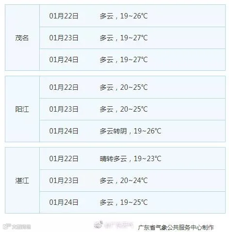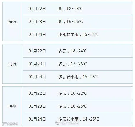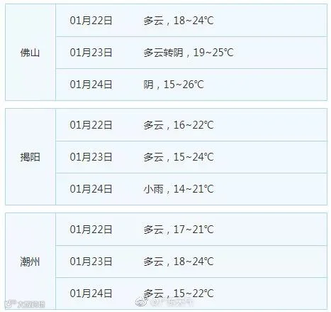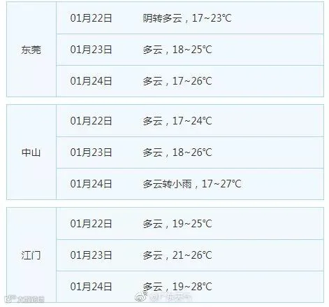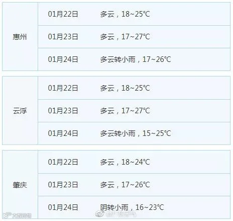 广东21个地市的天气预告