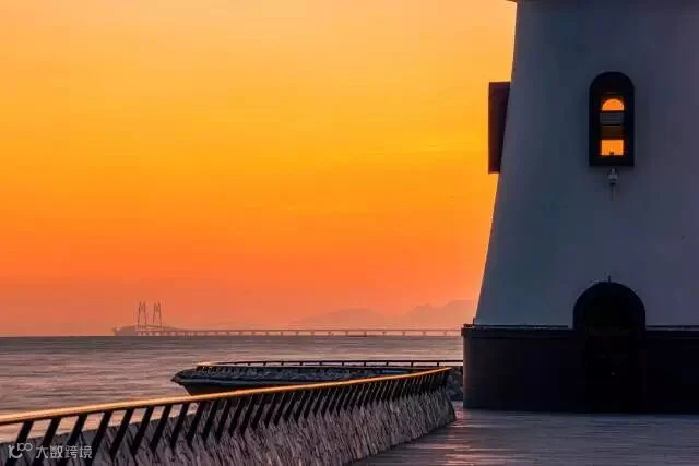 11月24日,日出时分,透过珠海灯塔看到远方的港珠澳大桥。AdolescentChat 摄