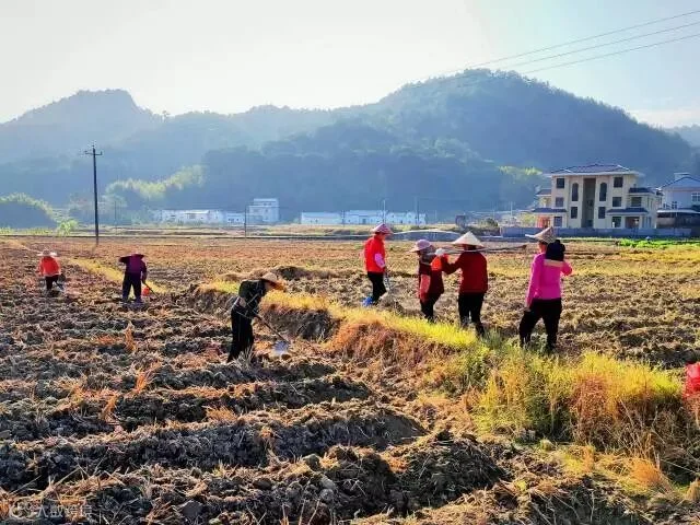 11月28日,梅州市平远县八尺镇八尺村的田园里一派冬种的忙碌景象,当地村民利用冬季农闲季节在水田种植蔬菜。茶油叔叔 摄