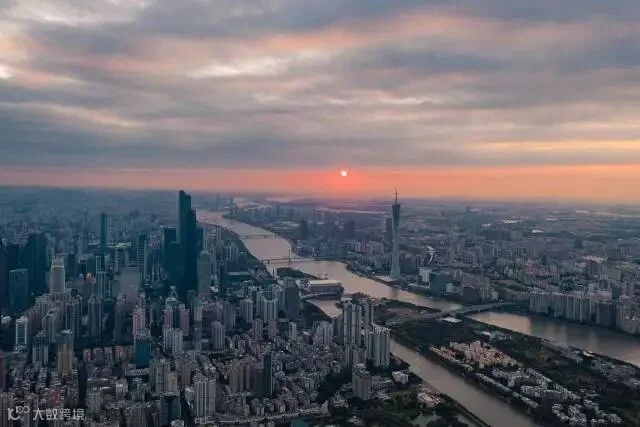 11月28日,冷空气使得广州气温有所下降,清晨的日出形成一道美丽的天际线。阿基 摄
