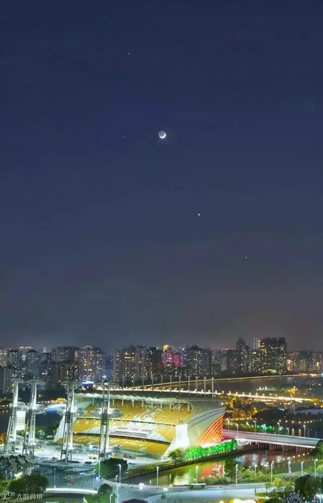 11月29日傍晚,广州海心沙上空出现四星连珠奇观。逸松 摄
