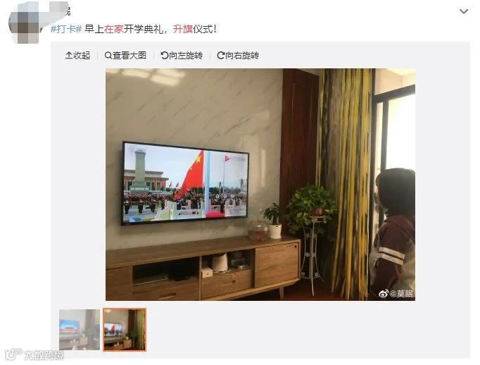 师生们在家大声唱国歌、