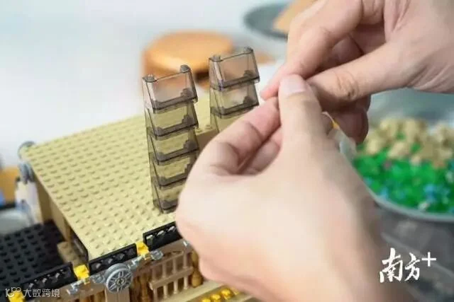 “乐高创作最难的是做好场景过渡的转接位”,黎志宁称,起初他花了大量时间去学习原有套装的图纸,坐车去深圳拿货时,他也会带上图纸琢磨作品形态,熟悉每个零件的形状和运用方法。