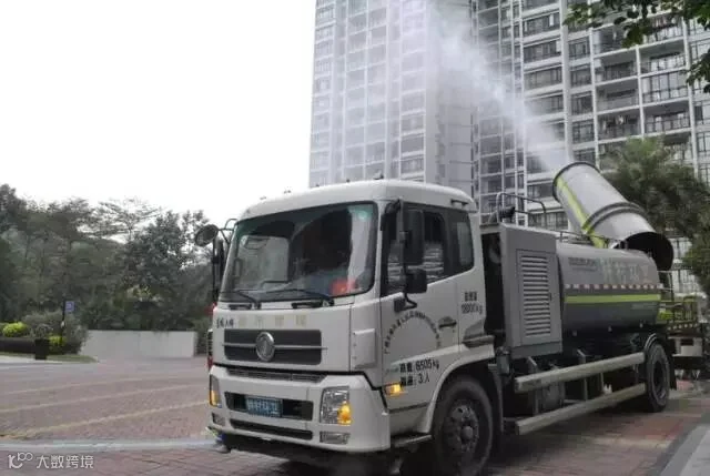 钟村街爱卫办还采用大型雾炮车、洒水车、手持喷雾机等设备对祈福新邨进行了全方位消毒。