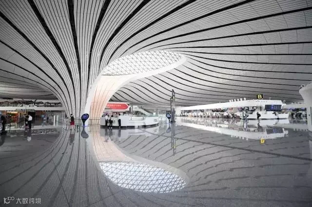 ——登机。大兴国际机场采用集中式多指廊构型,放射状的构型让旅客从航站楼中心到最远端登机口步行距离不超过600米,步行时间仅需不到8分钟,有效地解决了旅客的步行距离问题。