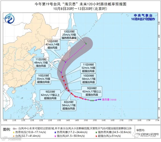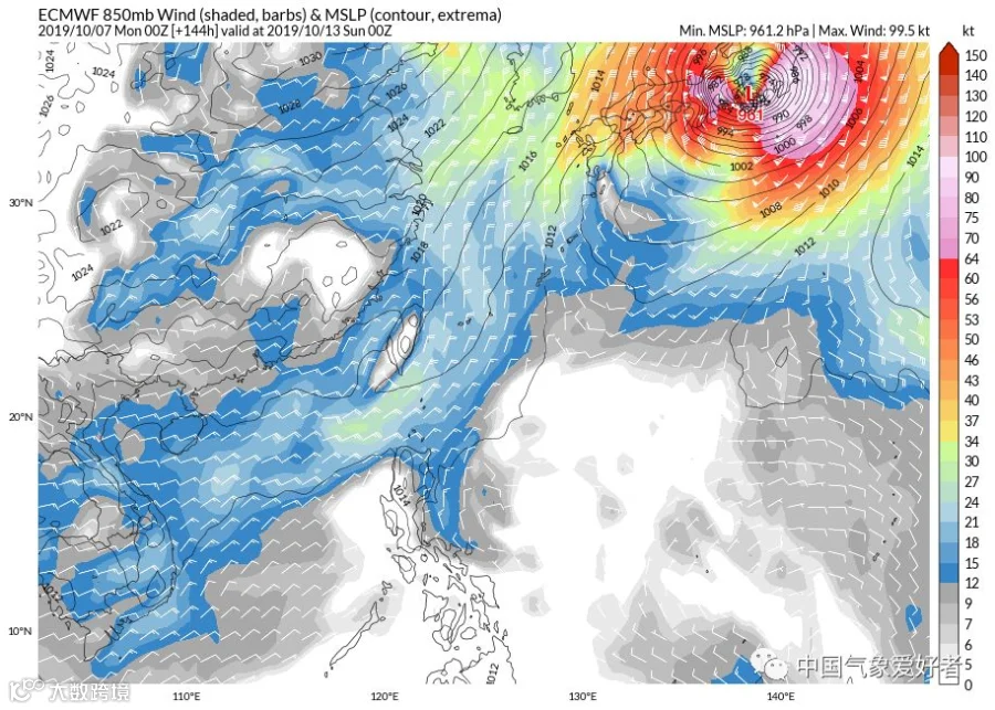 ▲10月13日海贝思诱发冷空气深度南下示意图,中气爱根据ECMWF数据制作