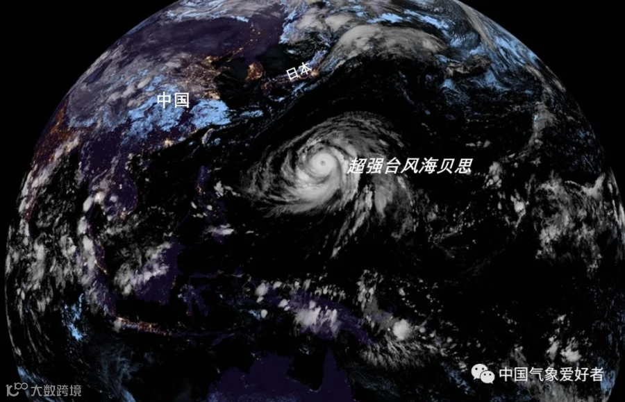 10月8日晚海贝思云图,可见其云系范围非常大。来自H8云图