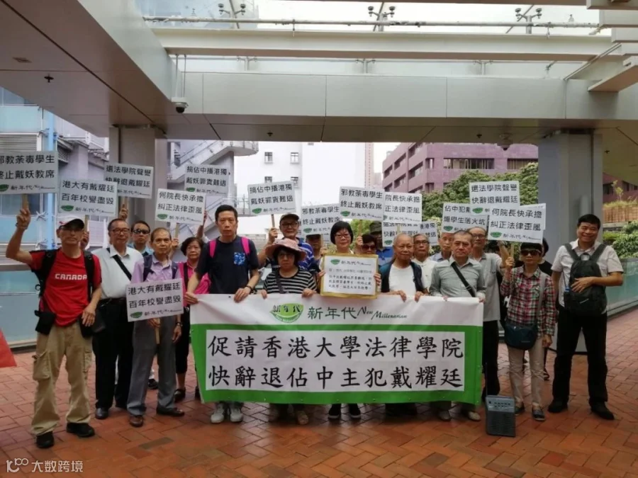 2019年4月,立法会议员何君尧、全国政协委员刘炳章等三十多名香港大学校友联谏要求清理门户,“法律学院家门不幸,有戴耀廷者尸位素餐。其忝为人师,未闻有学术成就,惟终日鼓吹叛逆,煽惑学生,满口荒唐……”