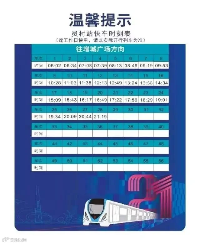 每天28趟,广州地铁21号线快车时刻表出炉!