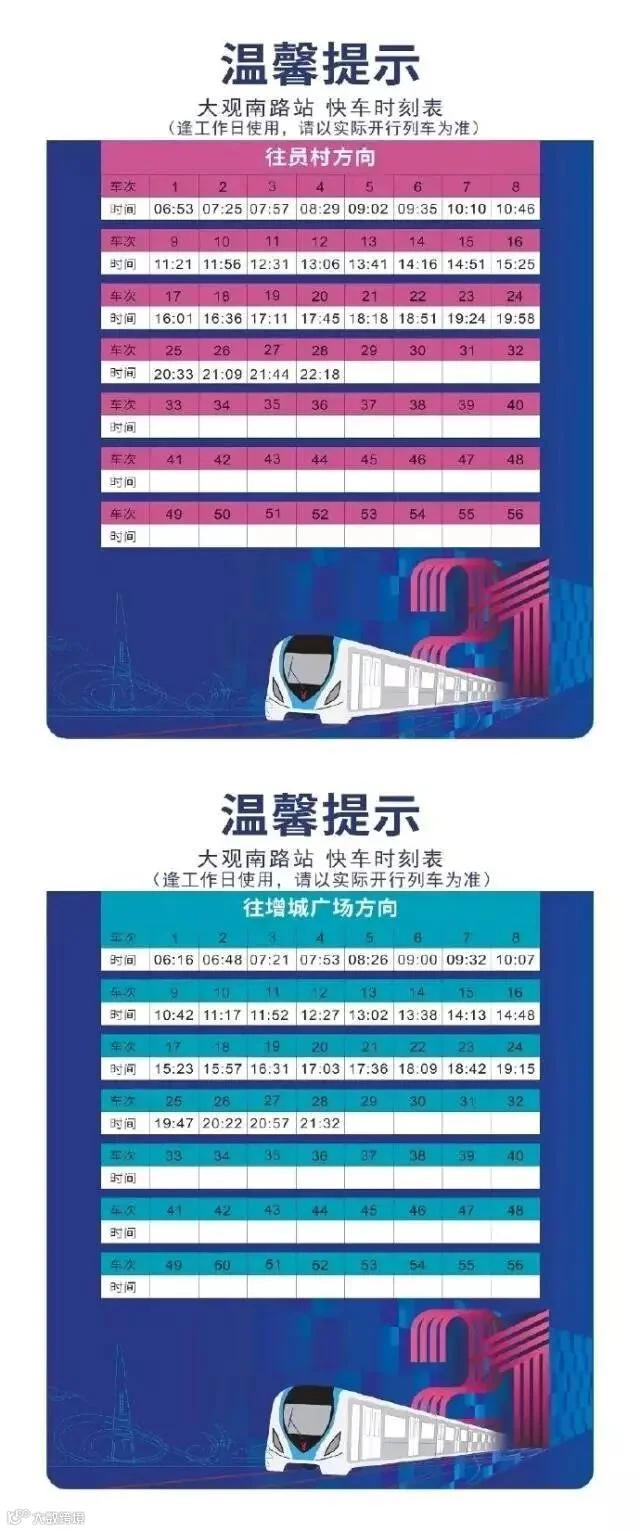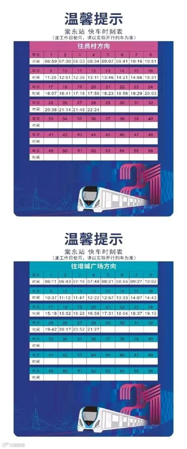 广州地铁21号线开通后,不少乘客对于快车时刻表非常关注。今天,“广州地铁”在其微信公众号正式发布21号线快车时刻表,请大家收好!