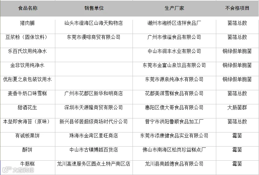 广东省市场监督管理局已要求辖区市场监管部门及时对不合格食品及其生产经营者进行调查处理,责令企业查清产品流向,采取