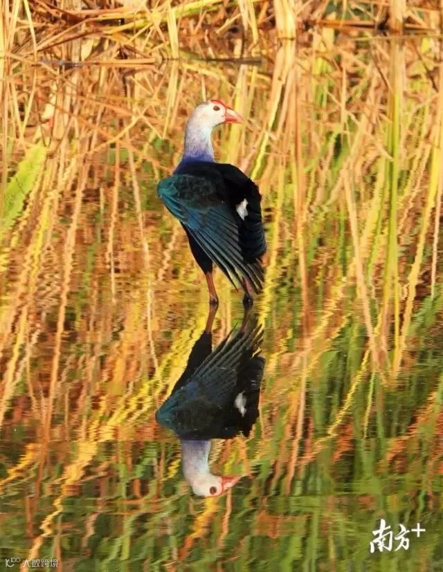12月初,汕头市澄海区的湿地边,紫水鸡觅食嬉戏。白仁 摄