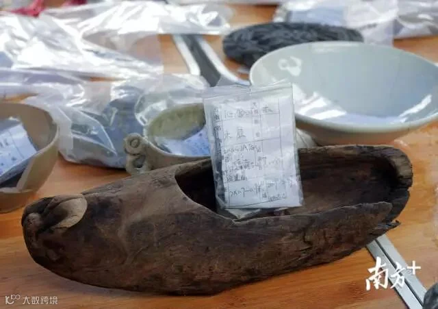 不得不提的还有这些木屐,是广州首次发现唐代木屐。要知道,在南方的酸性土壤中,能存留下如此完好的木屐并不容易。仔细看木屐能感受到浓郁的生活气息,比如头部刻有如意花纹,底部有木齿,在石头路面上走时可以起防滑的作用。