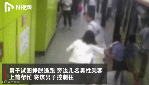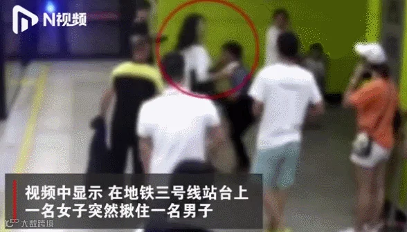 视频显示地铁三号线站台,一名女子突然揪住一名男子,将他按在地上。当男子试图挣脱逃跑时,旁边几名男性乘客上前帮忙,把该男子控制住。