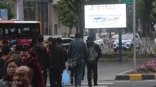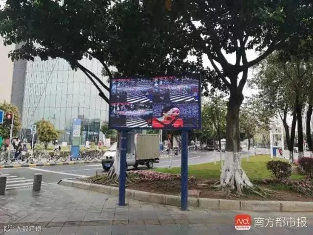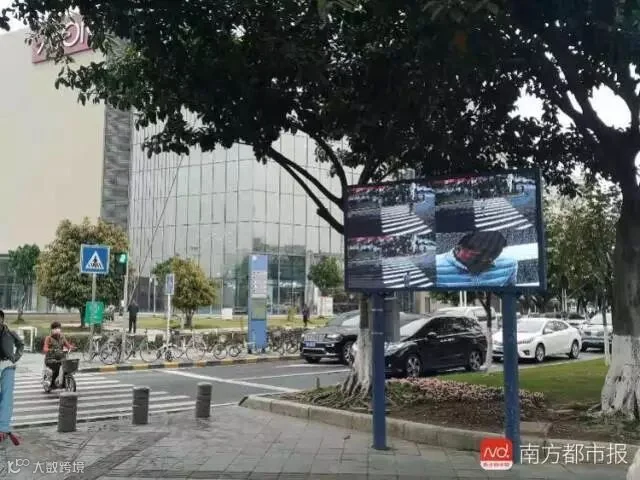 人行道的行人等待区,能看到一块LED大屏幕,