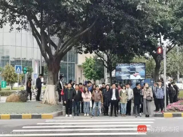如今,在广州番禺行人过马路闯红灯