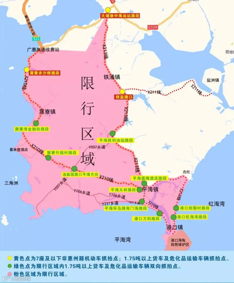 从4月5日至今年年底,惠州市惠东县平海、巽寮、港口等地旅游景区将实行交通管制,逢清明、五一、端午、中秋、国庆等法定节假日以及7月1日至8月31日暑假期间,全天候实行单双号进入限行。