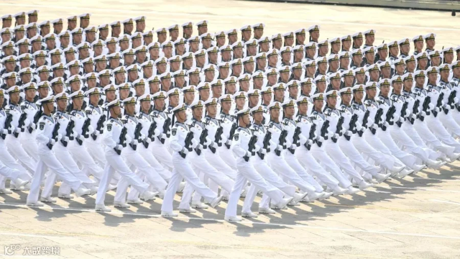 这是海军方队接受检阅。新华社记者 殷博古 摄