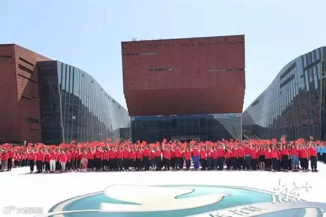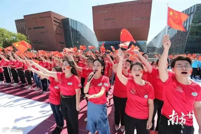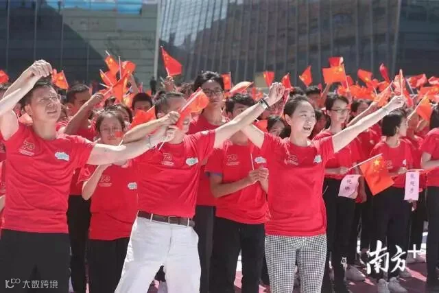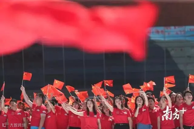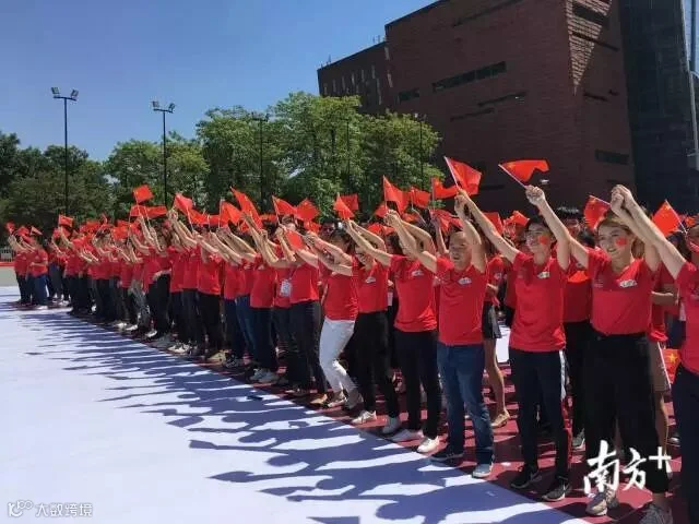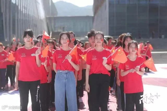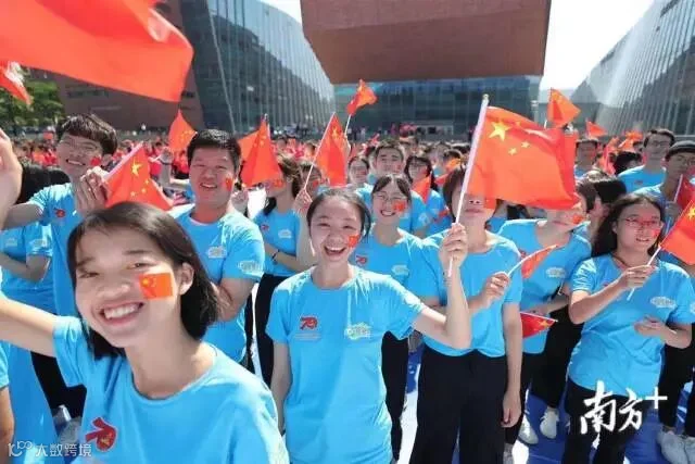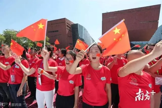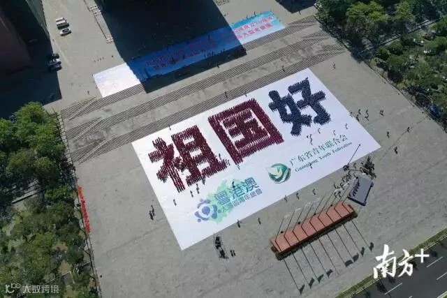 今天上午,在广州白云国际会议中心,数千名粤港澳三地青年摆拼出“祖国好”的字样,表达对新中国70华诞的深情祝福。