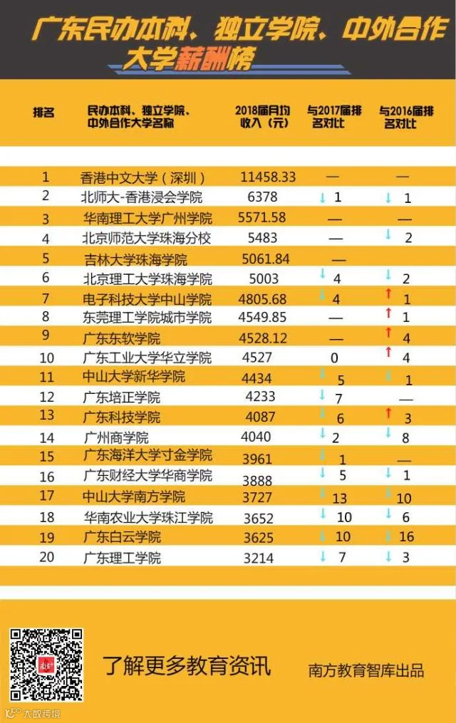 截至日前,全省20所民办本科高校、独立学院和中外合作大学发布了毕业生平均月薪水平。