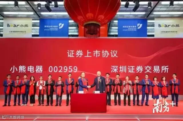 8月23日,来自佛山顺德的小熊电器股份有限公司正式在深交所敲钟上市交易。本次发行的股票数量为3000万股,发行价格为34.25元/股,募集资金总额为10.28亿元,主要用于小熊电器的创意小家电生产建设项目、智能小家电制造基地项目、研发中心建设项目以及信息化建设项目等。
