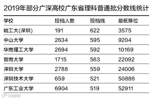 普通批次中,哈工大(深圳)则创下了理科的省内第一,录取分622分,排3653名。相比较而言,今年中大的理科投档分为595分,排位为9204名;华工的理科投档分为592分,排位为10169名。
