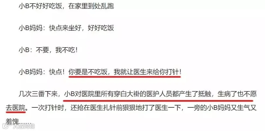 拿医生、护士吓唬孩子。孩子难受、生病都不敢告诉你,更不愿去医院。