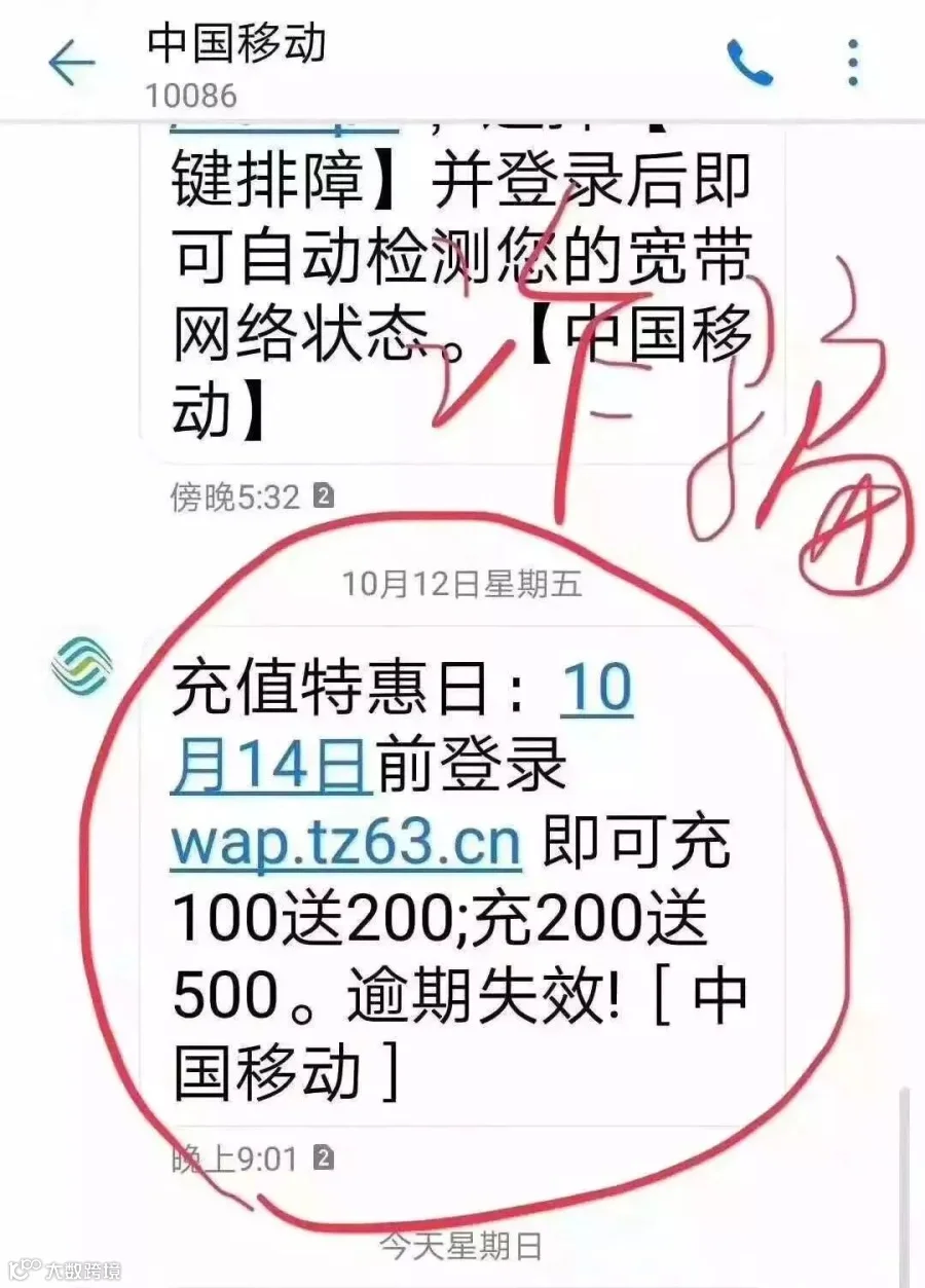 如果你足够细心,应该可以发现,虽然该短信由“10086”发出,但其结尾处的[中国移动],与官方短信结尾处的【中国移动】,还是有所明显不同的。